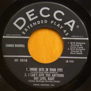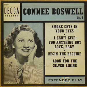 暖かな歌唱が素晴らしいコニー・ボズウェルの当時のLPには未収録のEP。超音波洗浄機でクリーニング済(Cleaned by ultrasonic cleaning machine)